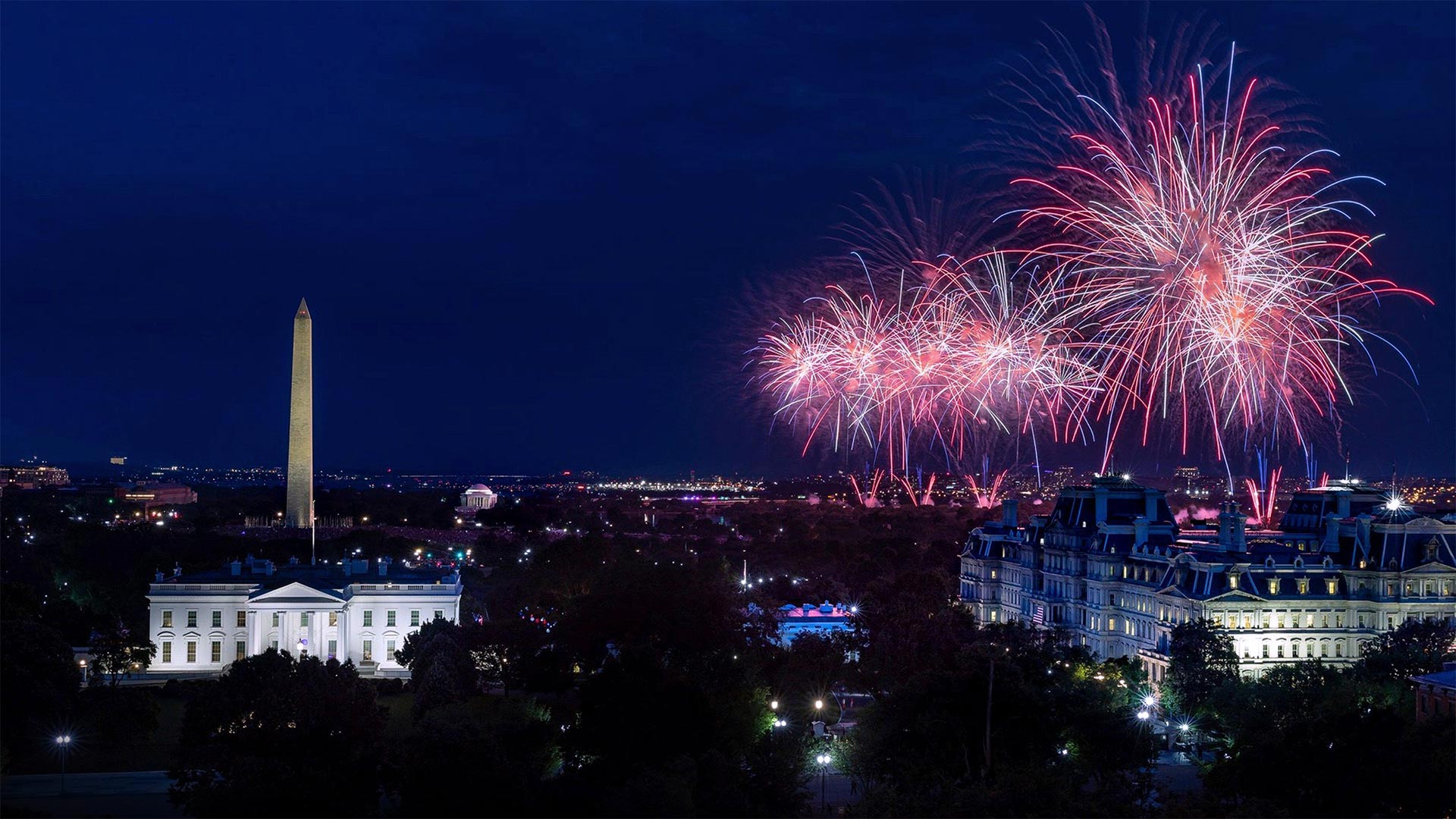 Fireworks explode during 独立城 Day celebrations on July 4, 2021, in 华盛顿, DC (© White House Photo/Alamy)